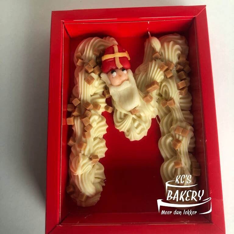 Standaard doen wij een home made Marsepein sintkopje op de Chocoladeletter en decoreren we met mini Fudge